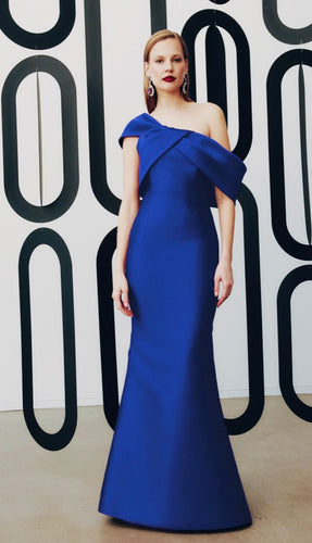 Frank Lyman Royal Blue One Shoulder A-Line Long Gown