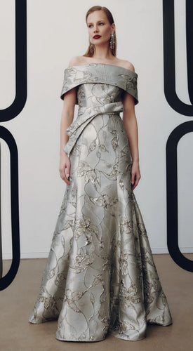 Frascara 4947 Silver Off the Shoulder Gown with Modern Bow at Waist