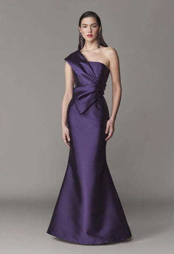 Frascara 4712 One Shoulder Gown with Draped Band and Bow Peplum