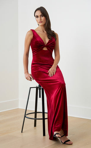 Jasmine 253062 Velvet Halter Long Gown with Slit