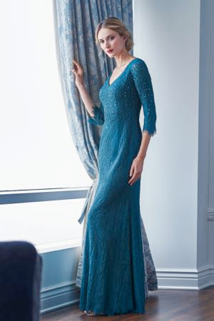 Jade Couture K218059 Lace Dress with V-Neckline