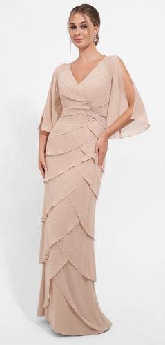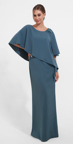 Jasmine Couture K278021 Crepe Gown with Draped Tunic Cape