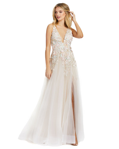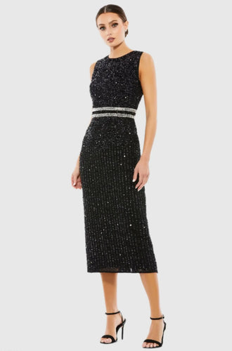 Macduggal 10509D Beaded Sleeveless Tea Length Gown