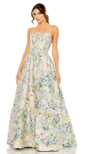 Macduggal 11604 Strapless Floral Brocade Long Gown
