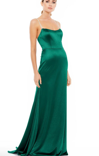 Macduggal 12428 Charmeuse Rhinestone Strap Long Gown