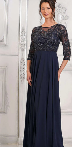 Chiffon gown with Beaded Bodice and A-Line Skirt