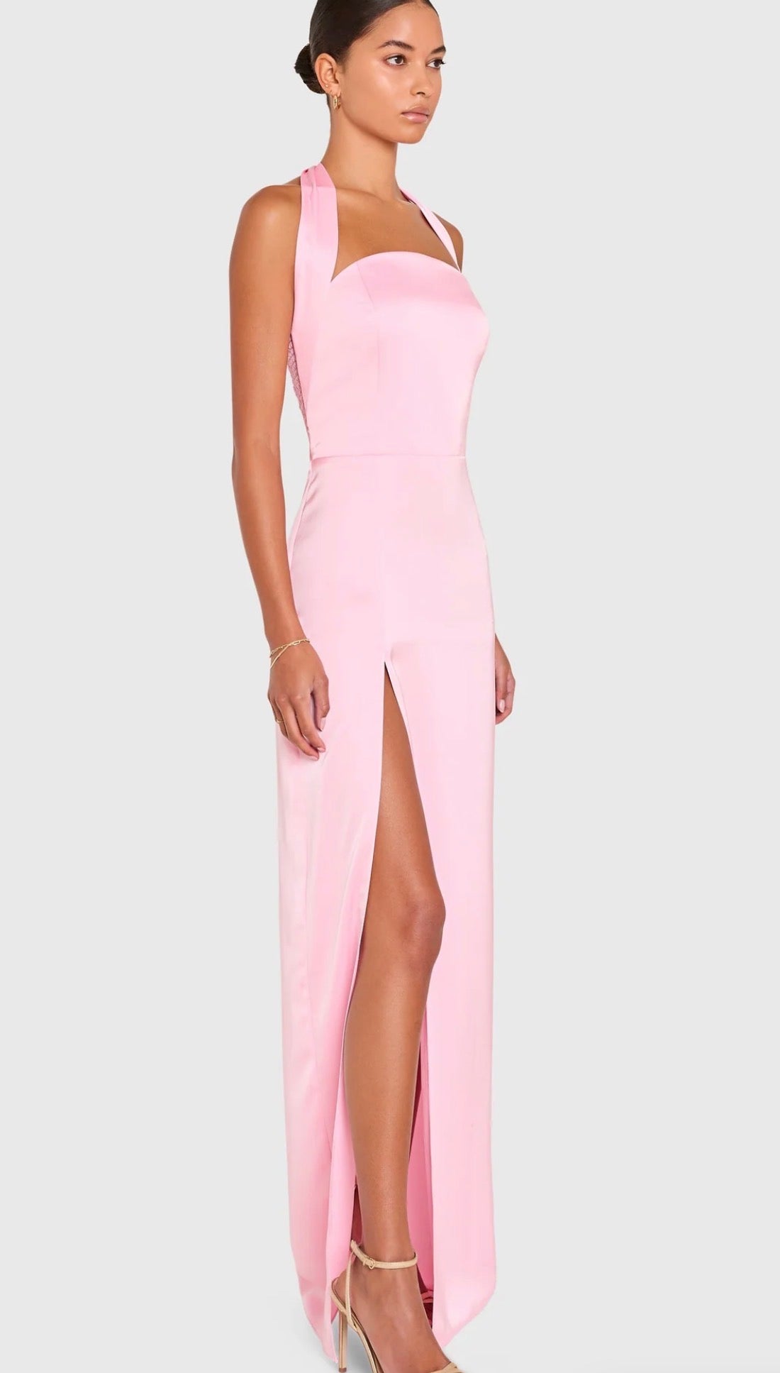 Make an entrance in the Cynthia gown. With its floor length design, curve skimming fit, and high slit, this gown balances classic elegance with a confident edge. It’s timeless but never baring-perfect with strappy heels and a bold lip.