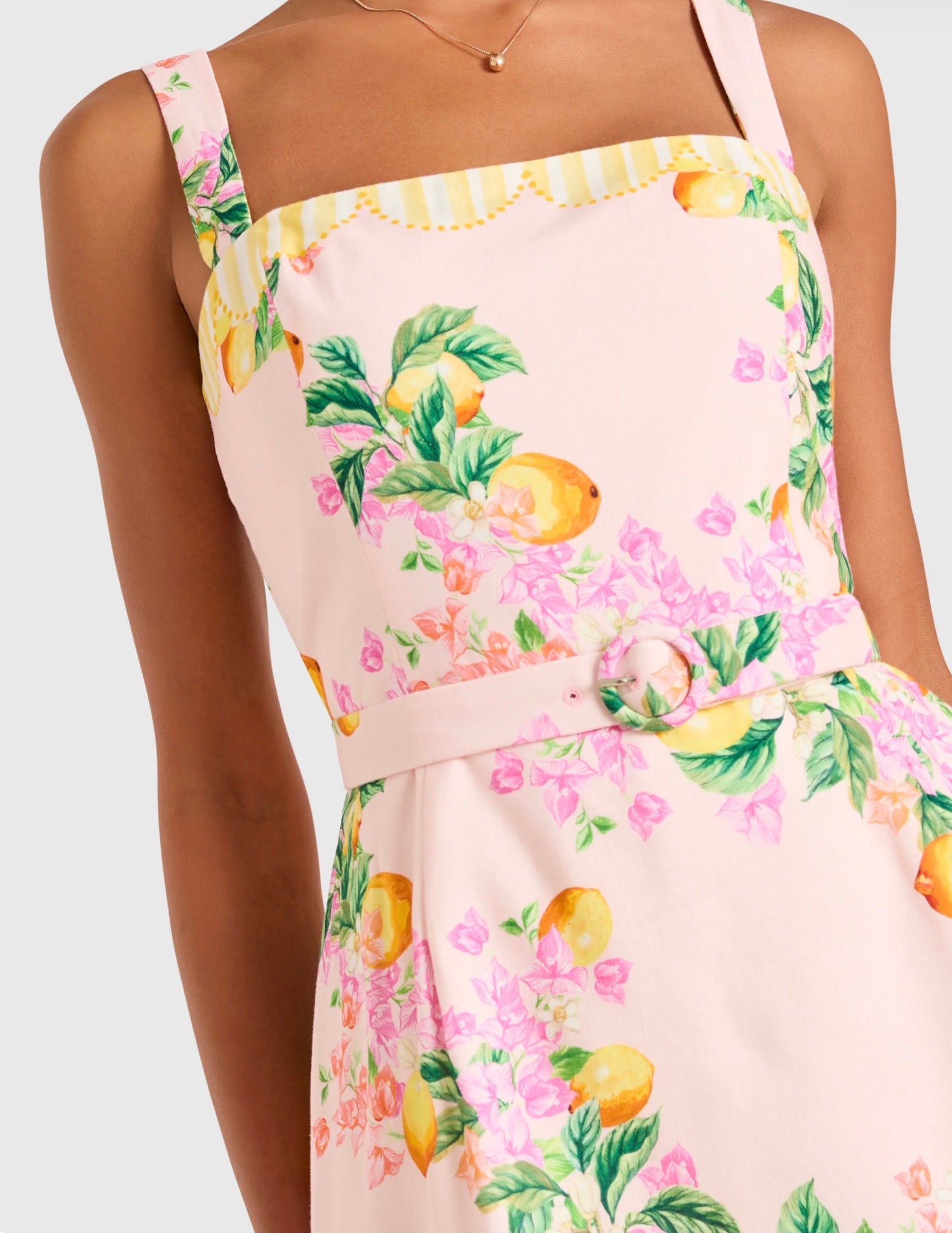 Stay sweet in the Judie Romper. This vintage-inspired neckline, wide straps, and a flared skirt for playful movement. Style with ballet flats, or a kitten heel for your next sunny day out…..or your next trip to Italy.