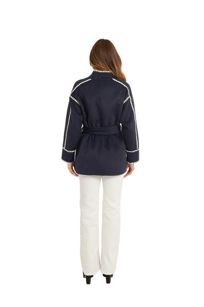 Love Token Lexa Wrap Coat in Navy with Ivory Stiching