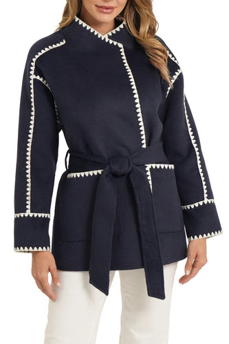 Love Token Lexa Wrap Coat in Navy with Ivory Stiching