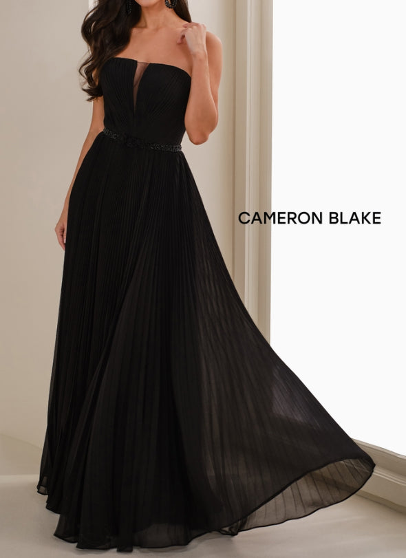 Cameron Blake CB903 Strapless Pleated Chiffon Long Gown