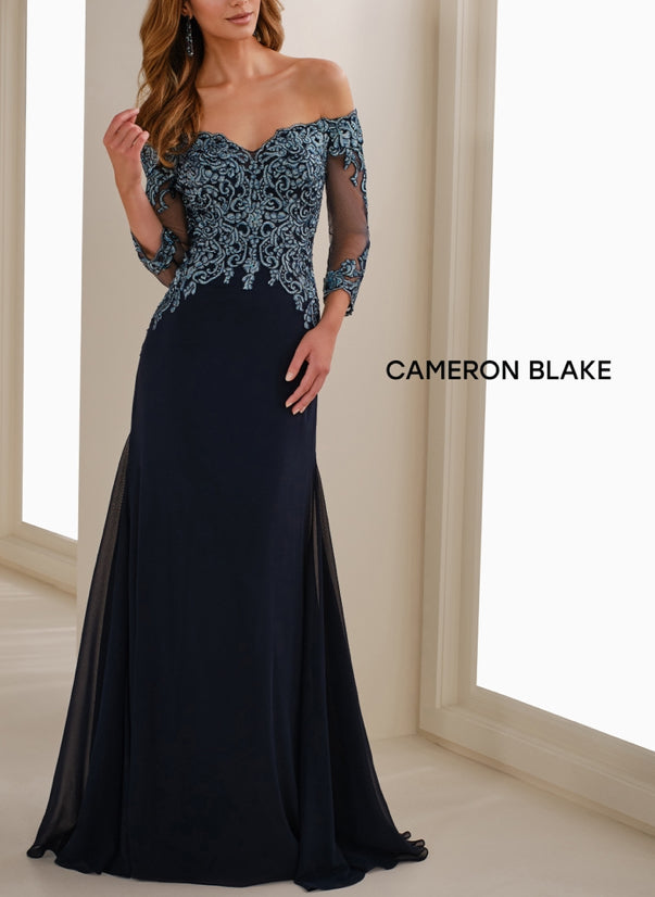 Stunning lightweight chiffon sheath with a sweetheart neckline and lace appliqués throughout the bodice. Detachable tulle 3/4 sleeves and shawl included.